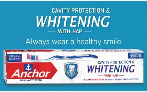 معجون الأسنان “أنكور للحماية من التسوس والتبييض مع HAP” هو تركيبة خاصة مصممة لحماية الأسنان من التسوس مع المساعدة على تبييضها. يحتوي على مادة هيدروكسي أباتيت (HAP)، وهي معدن طبيعي يقوّي مينا الأسنان، ويساعد في استعادة الابتسامة الصحية والمشرقة. هذا المعجون المفلور يكافح البلاك بفعالية، يمنع التسوس، ويعزز صحة الفم بشكل عام، مما يترك الأسنان نظيفة، ناعمة، ولامعة. مثالي للاستخدام اليومي للحفاظ على ابتسامتك محمية وناصعة البياض!