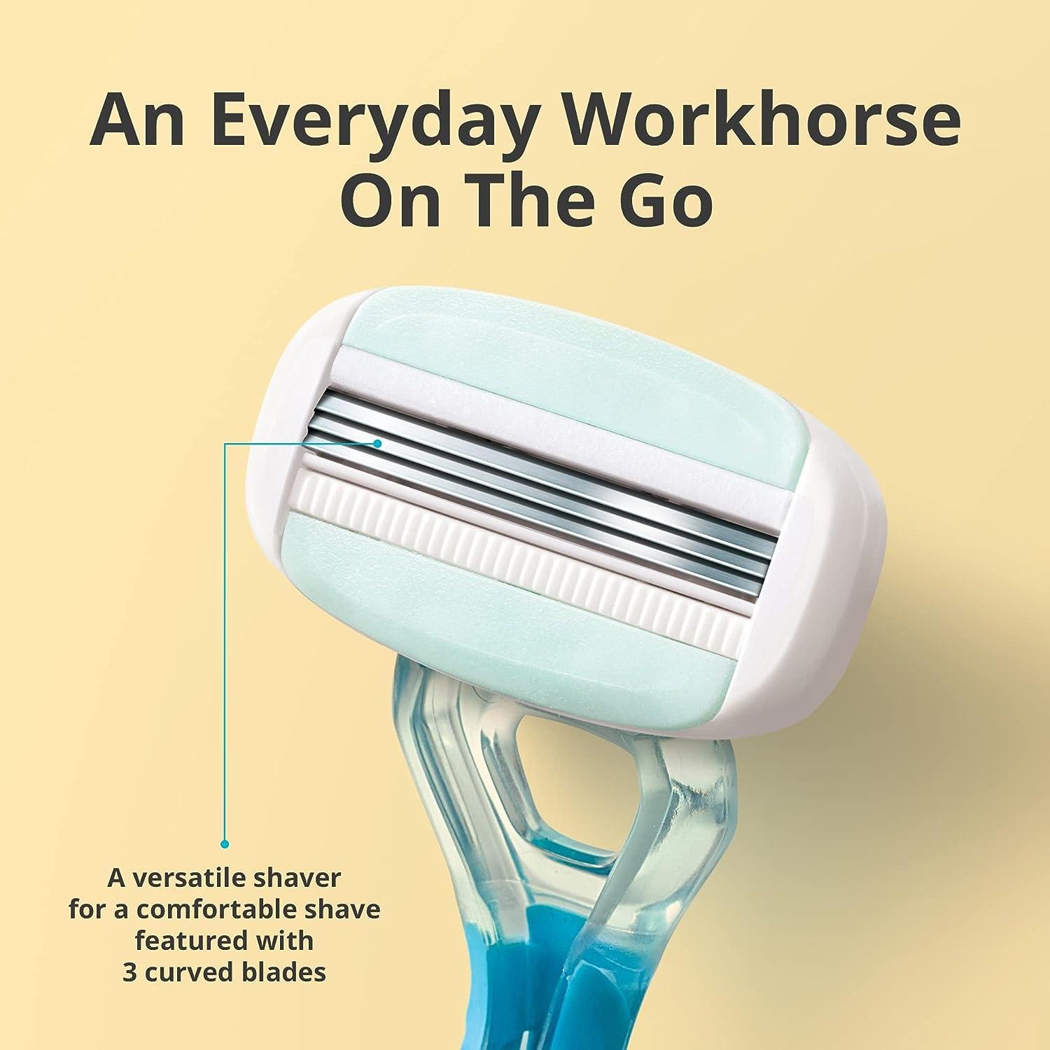 ثلاث شفرات منحنية: مصمّمة لحلاقة دقيقة وقريبة تتناسب مع انحناءات الجسم.