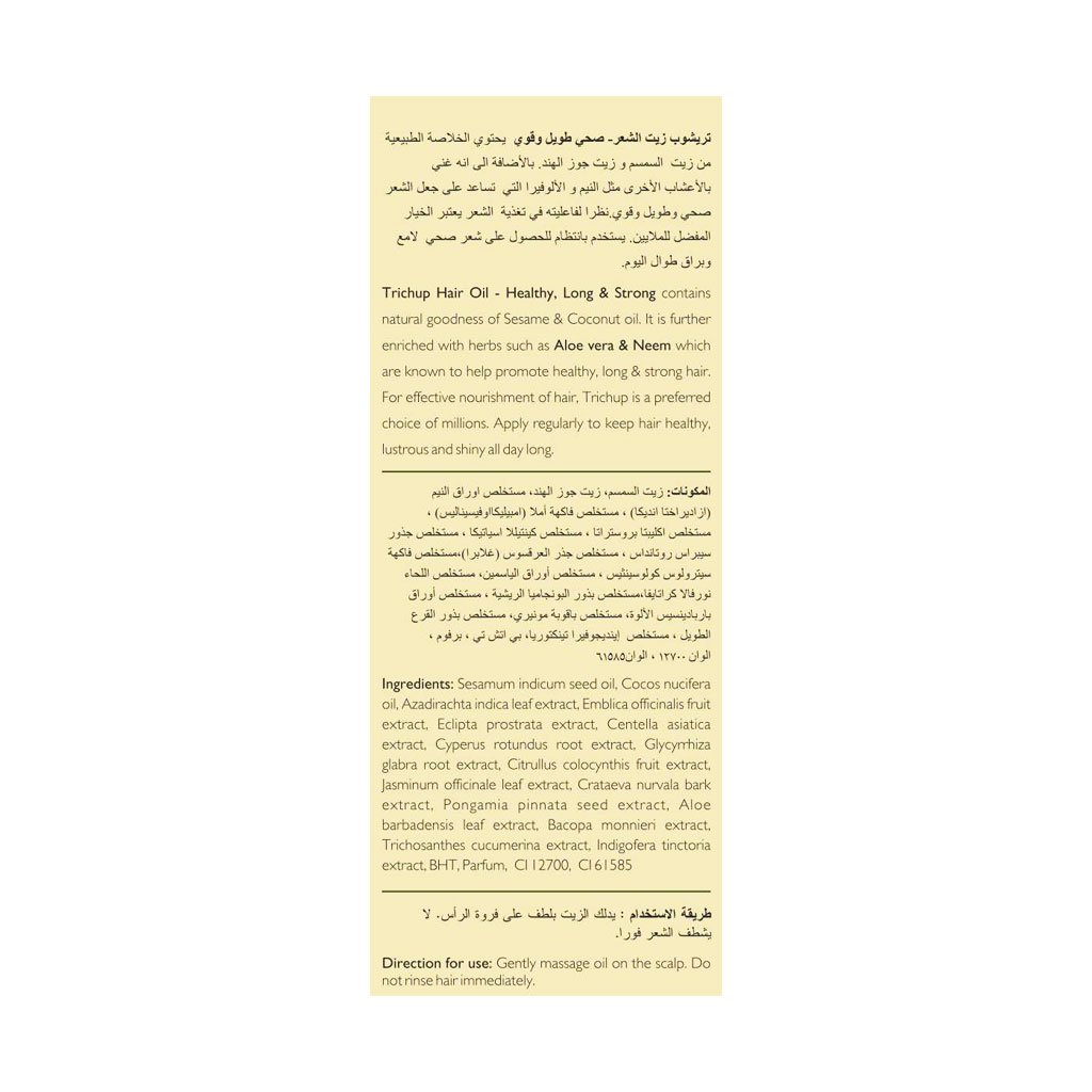 زيت الشعر تريتشوب – صحي وطويل وقوي، علامة تجارية رائدة في العناية بالشعر اكتسبت ثقة ملايين العملاء حول العالم بالإضافة إلى الأوساط الطبية. يعود سبب هذا النجاح الكبير إلى جودته وكفاءته الفائقة. زيت تريتشوب هو نتاج التطبيق الصحيح لأسرار العناية بالشعر الأيورفيدا القديمة، واستخدام الأعشاب الفعالة لتعزيز صحة الشعر، وعملية تصنيع دقيقة. يقوم الزيت باختراق جذور الشعر بفعالية ويقدم العناصر الغذائية الأساسية لجريبات الشعر، مما يعزز نمو الشعر الطبيعي.