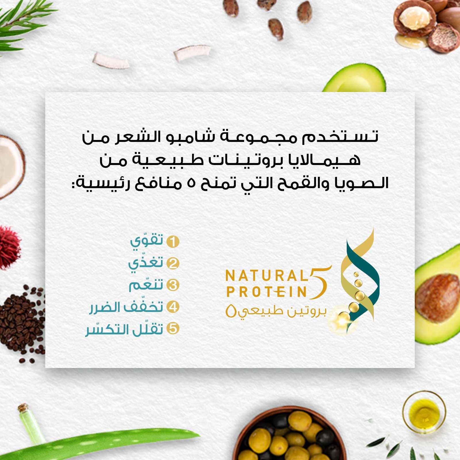 مكونات طبيعية: يحتوي على زيت جوز الهند والبروتينات النباتية للعناية اللطيفة بالشعر.