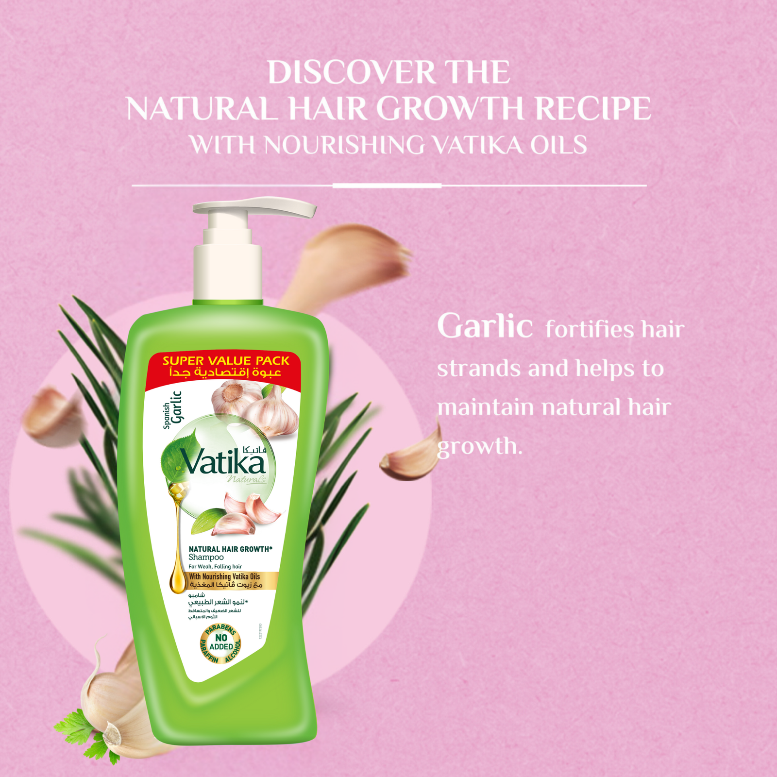 بفضل غنى الثوم الإسباني الطبيعي، يحتوي شامبو نمو الشعر من فاتكا ناتشورالز بالثوم الإسباني على خصائص مضادة للبكتيريا تمنع تساقط الشعر الناتج عن البكتيريا. زيت فاتكا الأساسي والتركيبة العشبية في شامبو الثوم الطبيعي لتساقط الشعر للرجال والنساء هي كل ما يحتاجه شعرك! مع شامبو فاتكا ناتشورالز بالثوم، يمكنك وداع تساقط الشعر والشعر الضعيف، واستقبال الشعر الصحي من خلال إيقاظ بصيلات فروة الرأس الخاملة واستعادة الحجم. يزيد الشامبو من النشاط الخلوي ويعزز نمو شعر أكثر كثافة وحيوية.