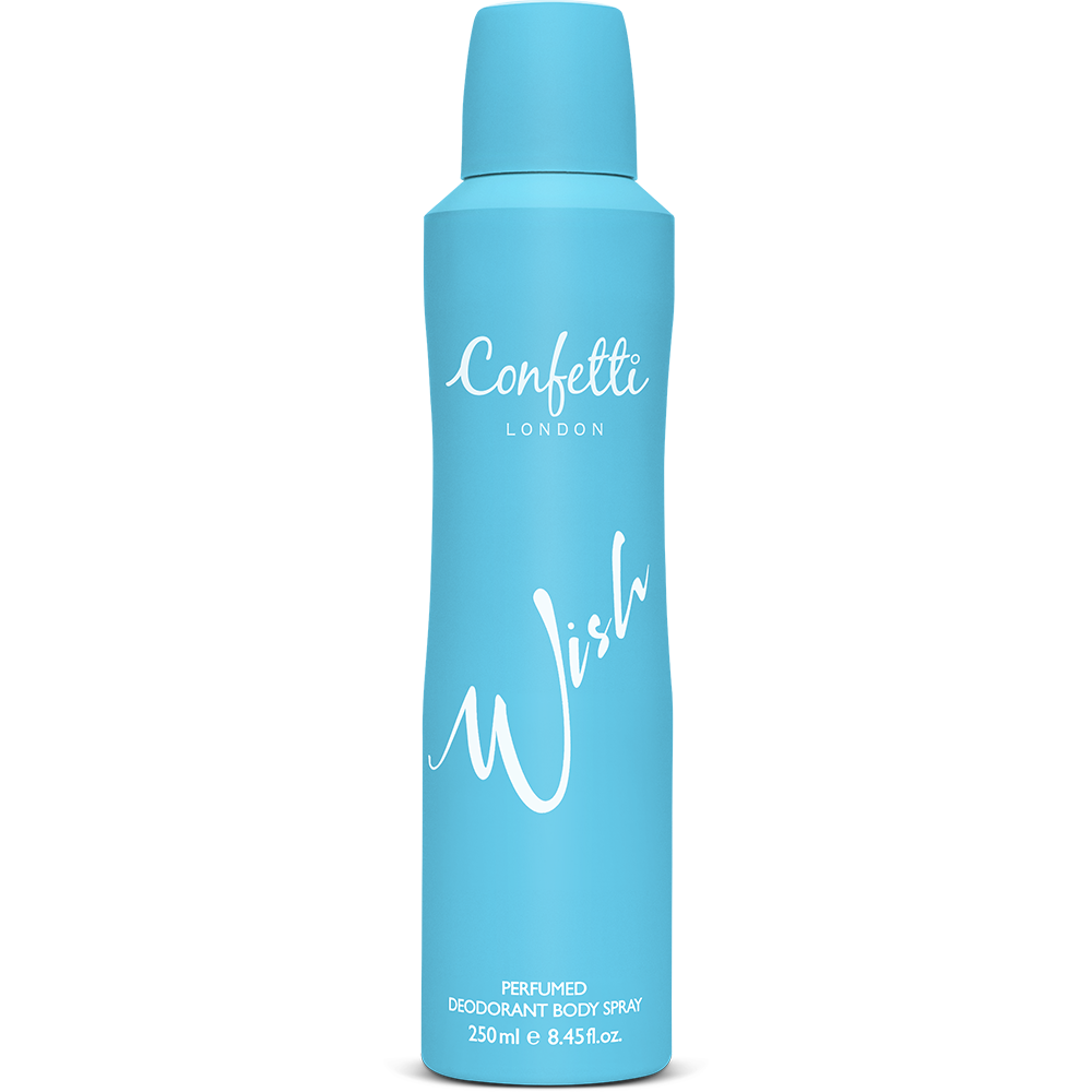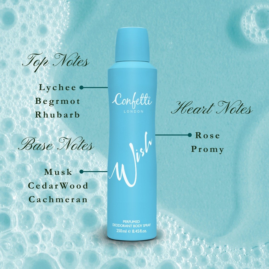 يأتي بخاخ الجسم كونفيتي لندن ويش ليجمع بين الانتعاش والرقي في عبوةٍ واحدة. تمتزج في رائحته نفحات زهرية خشبية تضيف لمسةً من الجمال والأنوثة، لتمنحكِ حضوراً مميزاً في كلّ مكان.