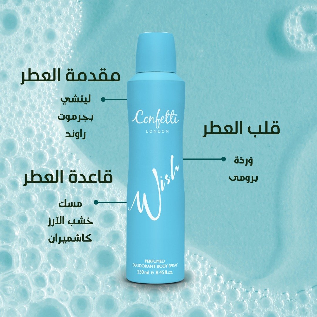 أضيفي كونفيتي لندن ويش إلى روتين عنايتكِ اليومية واستمتعي بعطرٍ يدوم ويزيدكِ ثقةً وتألقاً.