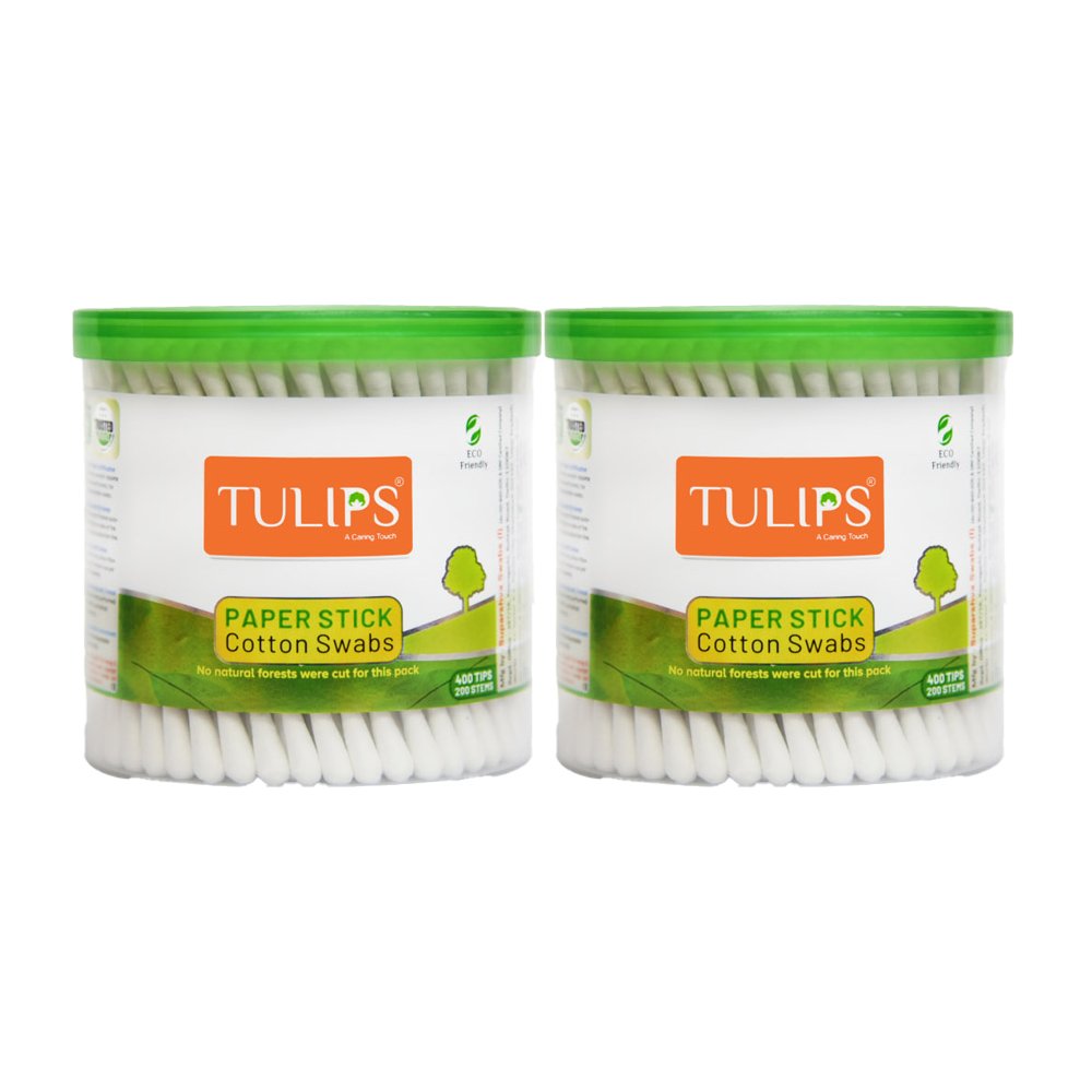 Tulips Paper Stick Cotton Swabs 200x2Tulips 2x Paper Stick Cotton Buds 200pcs