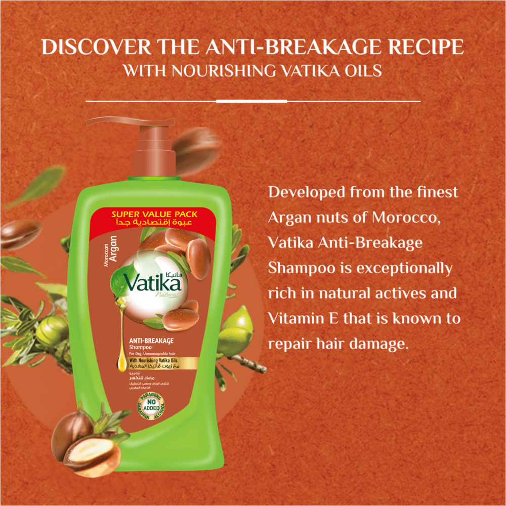 Vatika Naturals Moroccan Argan Anti-Breakage Shampoo 1000ml | Moisture Soft Hair | For Dry, Unmanageable Hair