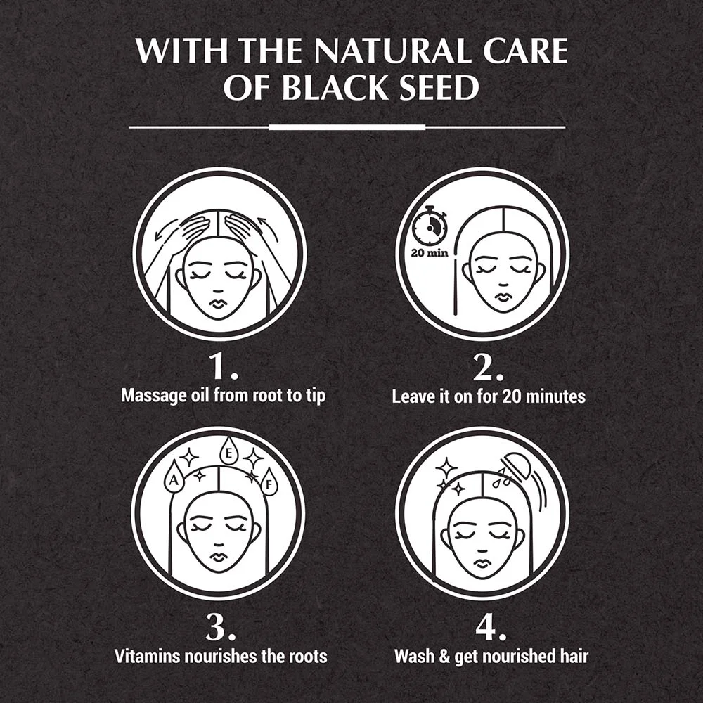 Nourish your precious hair strands simply in 20 minutes with the Blackseed Enriched Hair Oil for Strong & Shiny Hair by Vatika with the goodness of amino acids, fatty acids, and minerals. Natural ingredients like Black Seed have been known for centuries in the ancient cultures of Asia and the Middle East for their powerful properties. Black Seed oil is extracted from the seeds of the black cumin (Nigella Sativa) plant native to southwest Asia. The Black Seed is a good source of essential amino acids, omega-3, omega-6, omega-9, Vitamin A (Retinoids), and super nutrients Nigellone and Thymoquinone. Rejuvenate your lifeless locks during hair oil dry scalp treatment for women or men with our antioxidant-rich Black Seed Oil. Thanks to our scalp oils ayurvedic staples revitalize & strengthen strands to fight hair loss and give a hair repair treatment for damaged hair. Vatika now brings to you the benefits of this unique herb in an oil. Discover complete hair care – improved shine, texture, and volume with regular use of New Vatika Black Seed hair oil. The 100% Natural Hair Oil for Men and Women is paraben, sulfate, and silicones free. Strengthen your hair from the root to tip with Vatika Naturals Black Seed Enriched Hair Oil