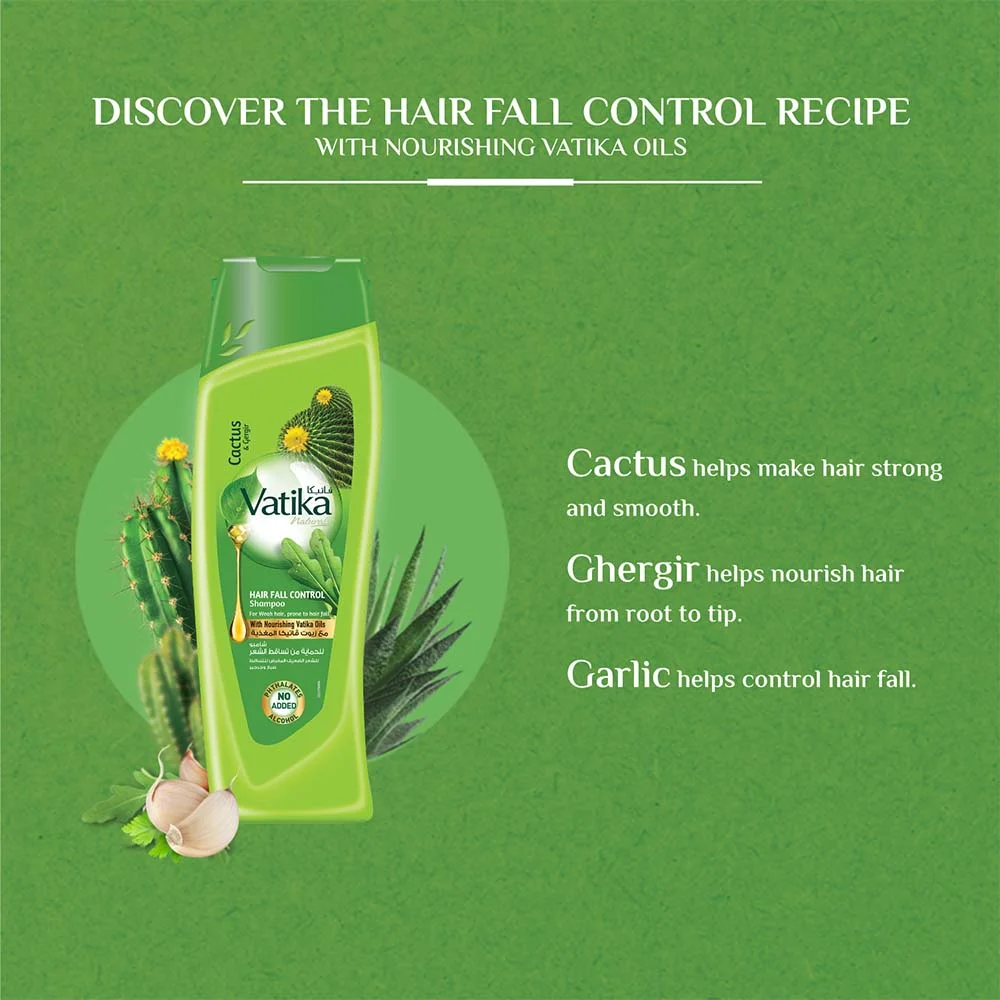 Vatika Naturals Hair Fall Control Shampoo 400ml | Enriched with Cactus & Gergir Extracts | For Weak Hair, Prone to Hair Fall | With Nourishing Vatika Oils