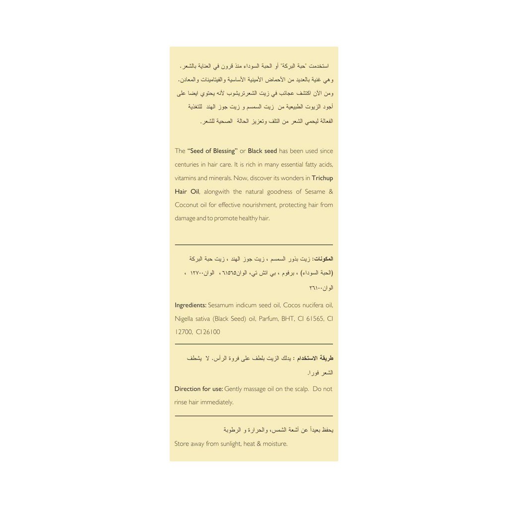 The “Seed of Blessing” or Black seed has been used since centuries in hair care. It is rich in many essential fatty acids, vitamins and minerals. One of the more popular uses of black seed oil is for hair restoration and promoting overall hair health. It contains omega 3, 6 and 9, that have shown to improve hair follicle production and strength. Black seed oil has also proven to be useful as a natural remedy for premature gray hair. Now, discover its wonders in Trichup Hair Oil, along with the natural goodness of Sesame & Coconut oil for effective nourishment, protecting hair from damage and to promote healthy hair.