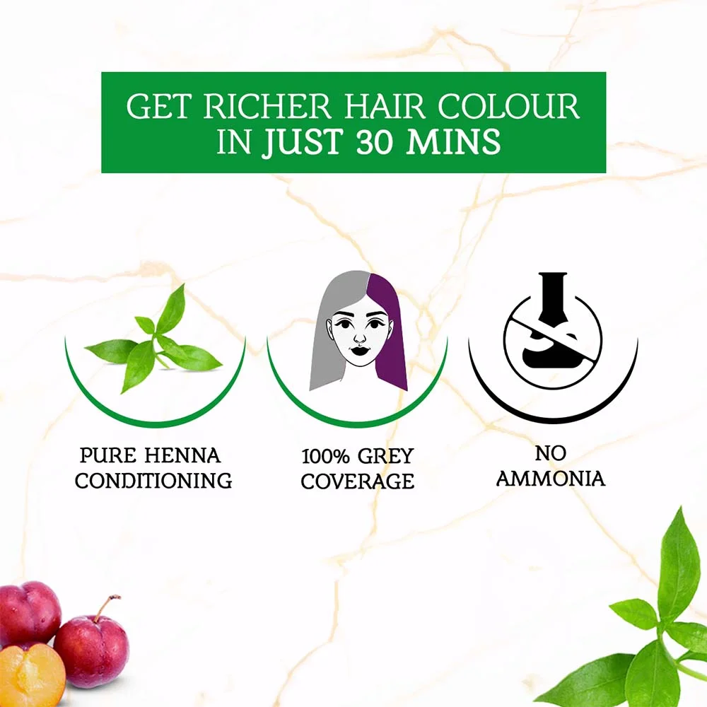The Dabur Vatika Henna Hair Colour for Grey hair (Women) is safe and easy to use. Choose Vatika for your comfort and safety in a variety of colorful, eye-catching colors with nourishing ingredients you can trust! The current Burgundy guarantees 100% coverage of grey hair and is simple to apply. Dabur Vatika hair colour for ladies treats hair with rich natural color and contains 0% ammonia, leaving it smooth, lustrous, and glossy. You are now prepared to appreciate yourself in just 30 minutes with the stunning Burgundy Henna hair color by Vatika!