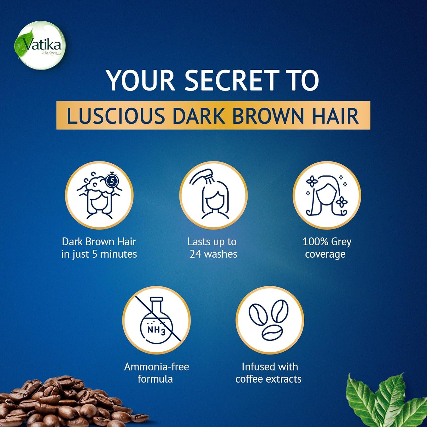 Vatika Naturals Instant Henna Shampoo Hair Colour Dark Brown (20ml + Gloves) | With Coffee Extracts | 100% Grey Coverage in 5 Minutes | No Ammonia | Lasts Up to 24 WashesVatika Naturals Instant Henna Shampoo Hair Colour Dark Brown (20ml + Gloves) | With Coffee Extracts | 100% Grey Coverage in 5 Minutes | No Ammonia | Lasts Up to 24 Washes