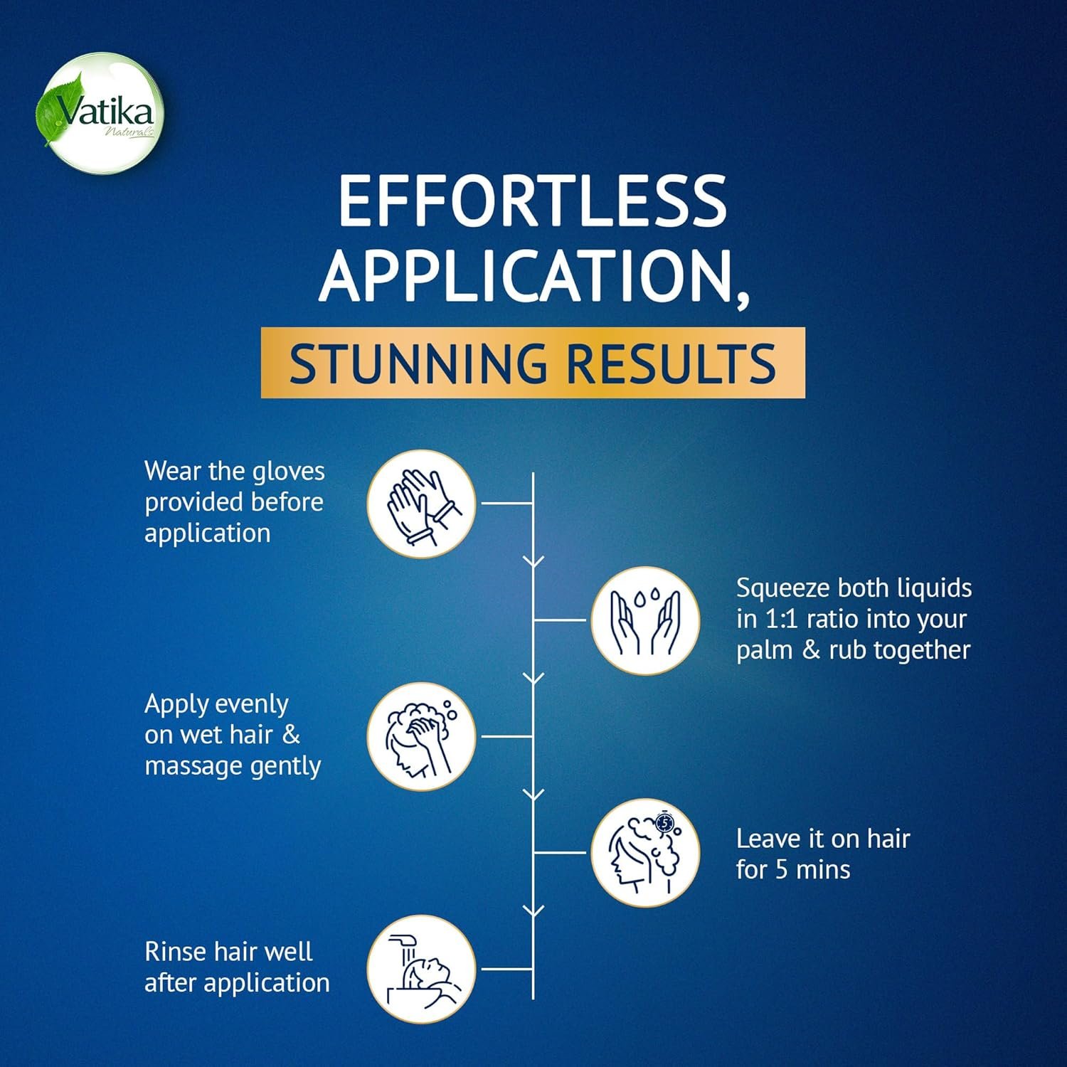 Mixing Ratio (Colorant/Developer 1:1) Precaution: Perform skin allergy test 24 hours before first use of product. 1. Wash your hands before application. Wear the gloves provided and open Henna Shampoo Hair Colour Sachet. 2. The sachet contains 2 liquids in 1:1 mixing ratio. Squeeze out both the liquids completely from the bottom of the sachet into your palm and mix/rub together till you get homogenous content. 3. Apply evenly on wet hair as shampoo and massage gently. 4. Leave it on hair for 5 mins and rinse hair well after application.