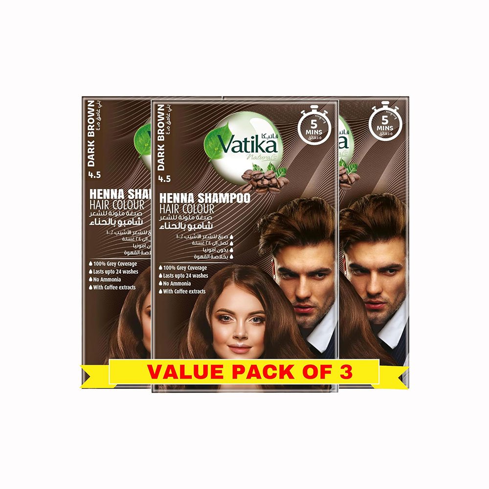 Indulge in the luxurious at-home transformation of your hair with Vatika Naturals Henna Shampoo Hair Colour in just 5 minutes! Enriched with invigorating Coffee Extracts, our formula not only delivers a stunning and natural dark brown hue but also provides intensive nourishment, leaving your hair irresistibly soft and manageable. The 100% ammonia-free blend ensures a gentle colouring process that covers 100% of grey and white hair seamlessly, enhancing your hair’s authentic beauty. Revel in the vibrancy that lasts up to 24 washes, as the formula penetrates each strand, creating a long-lasting and captivating dark brown finish. Experience the perfect blend of nature and colour, unveiling healthier, revitalized, and elegantly coloured hair! Discover your perfect instant hair colour match – also available in Natural Black Colour enriched with Blackseed Extracts.