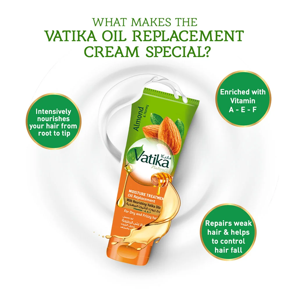 Vatika Naturals Moisture Treatment Oil Replacement | Almond & Honey | Non-Sticky & Non-Greasy | For Dry & Rough Hair – 200ml